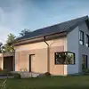 The living area is a large living room open to the garden with a kitchen and a guest room or office space ideal for remote working. The night part located on the first floor has two comfortable rooms for children, a bedroom with a separate large wardrobe for parents, as well as a comfortable and practical bathroom with a large shower, a bathtub under the window and two hand washbasins. An illuminated staircase with a storage is an example of one of the solutions that allow every space of the usable floor area to be used. If you value modern functionality, the H2 model is made just for you.