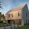 V3 is a barn-type house, full of open spaces and glazing. It combines two bodies: the main one with a gable roof and the entrance, creating a T-shaped building with a rectangular attic. The compact main body of the building with slight reliefs and the juxtaposition of two contrasting materials on the facade give it a unique character.