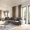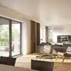 The house functions were divided between two storeys and a spacious habitable attic. The entire ground floor represents daytime living part with a very sunny and spacious living room. The kitchen with direct access to the terrace is also very impressive; despite being opened to the living room - it remains slightly hidden. The first floor comprises resting area with three bedrooms, two bathrooms (both with shower cubicle and bathtub) and a wardrobe. The attic can provide space for work or study in extremely quiet conditions.